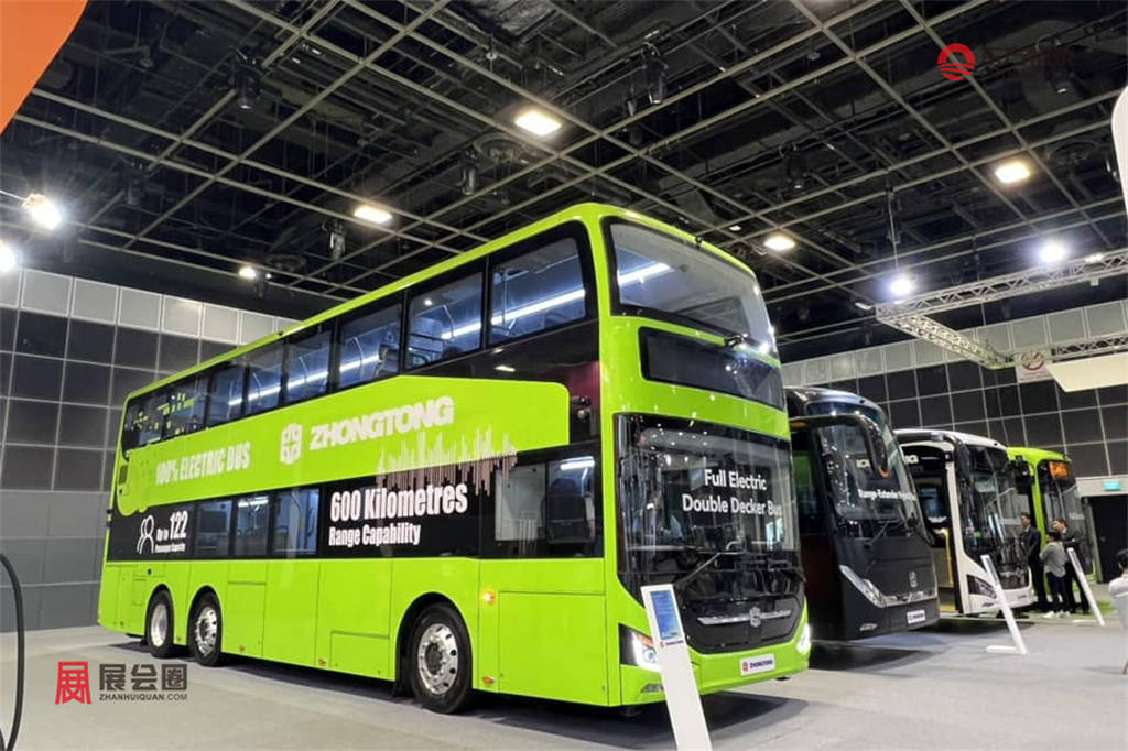 中通客车(Zhongtong Bus):中通在展会中亮相其LCK6126EVGS N12D电动双层巴士,该款车型为11.99米、三门、双梯(3‑door,2‑staircase)规格。据报道,此前已有一台该车用于本地试运营,并在SITCE 2024中正式亮相。