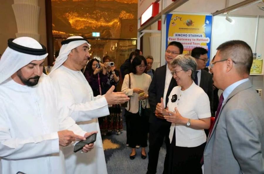 10月8日,驻迪拜总领事欧渤芊应邀参观第三届迪拜服务贸易博览会(CTW Global)。本届展会以“高端对话”与“精准对接”为核心,聚焦数字服务与全球合作,吸引超20家中国企业参展,展示VR元宇宙、AI解决方案、数字营销等前沿技术,以及非遗工艺等文化产品。